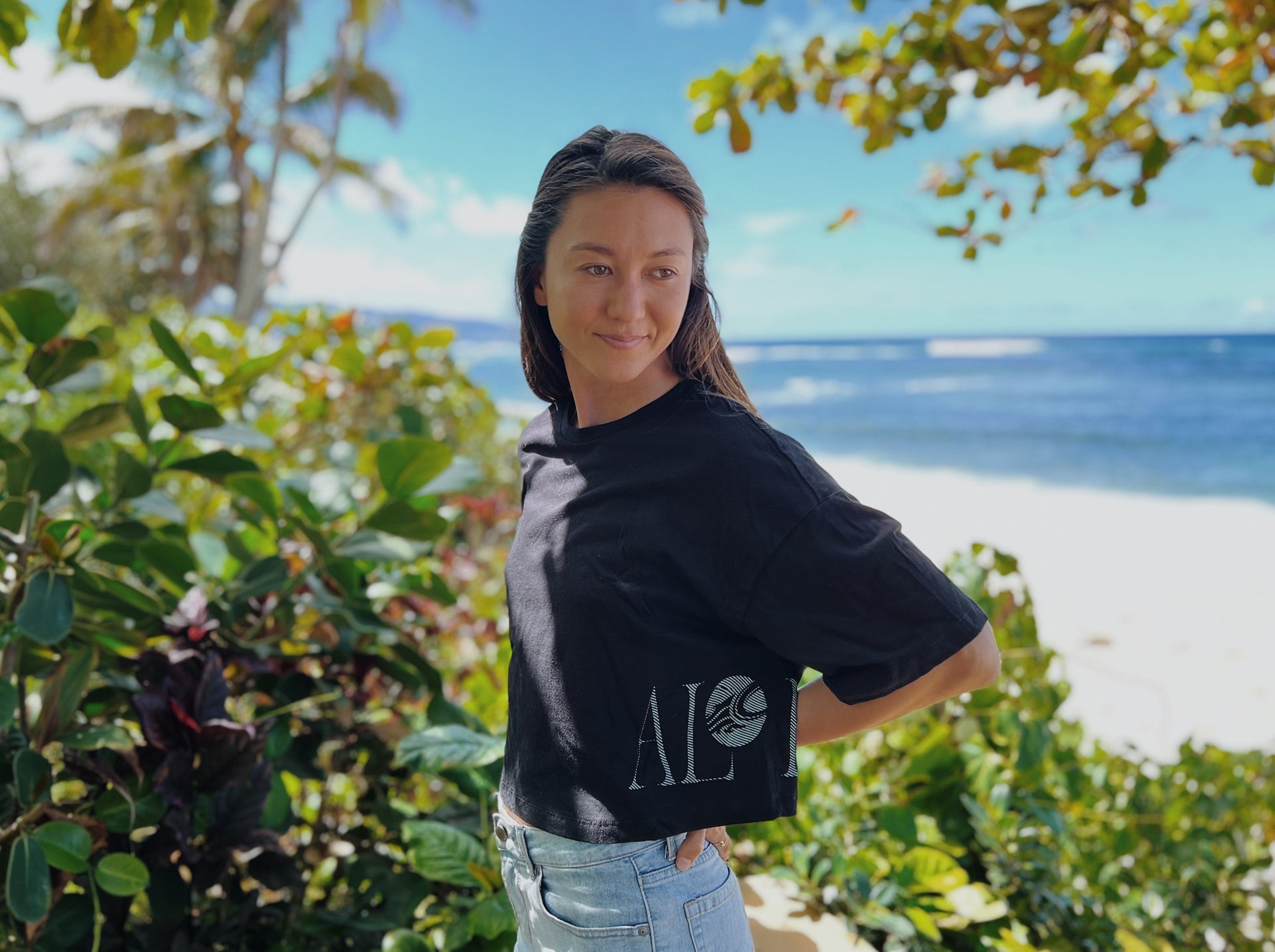 CAB W CROP ALOHA TEE BLK M