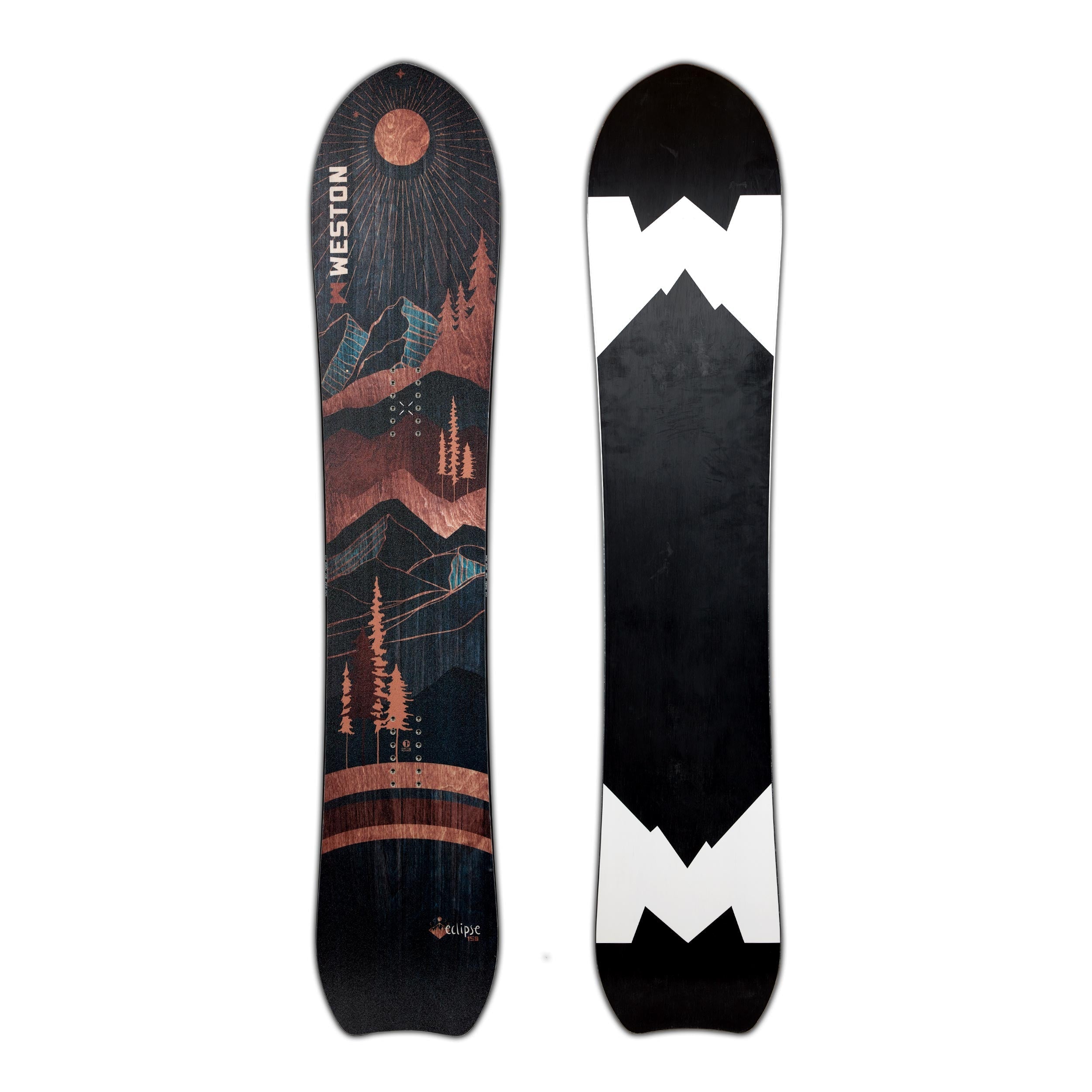 The Eclipse Snowboard is Weston’s answer to riders who want the freeride power of the Backwoods, with a side of finesse and flow. Designed for smaller-footed riders or anyone who prefers a tighter turn radius, the Eclipse is a directional, mid-stiff board built for slashing trees, ripping steeps, and floating like a dream in deep snow.