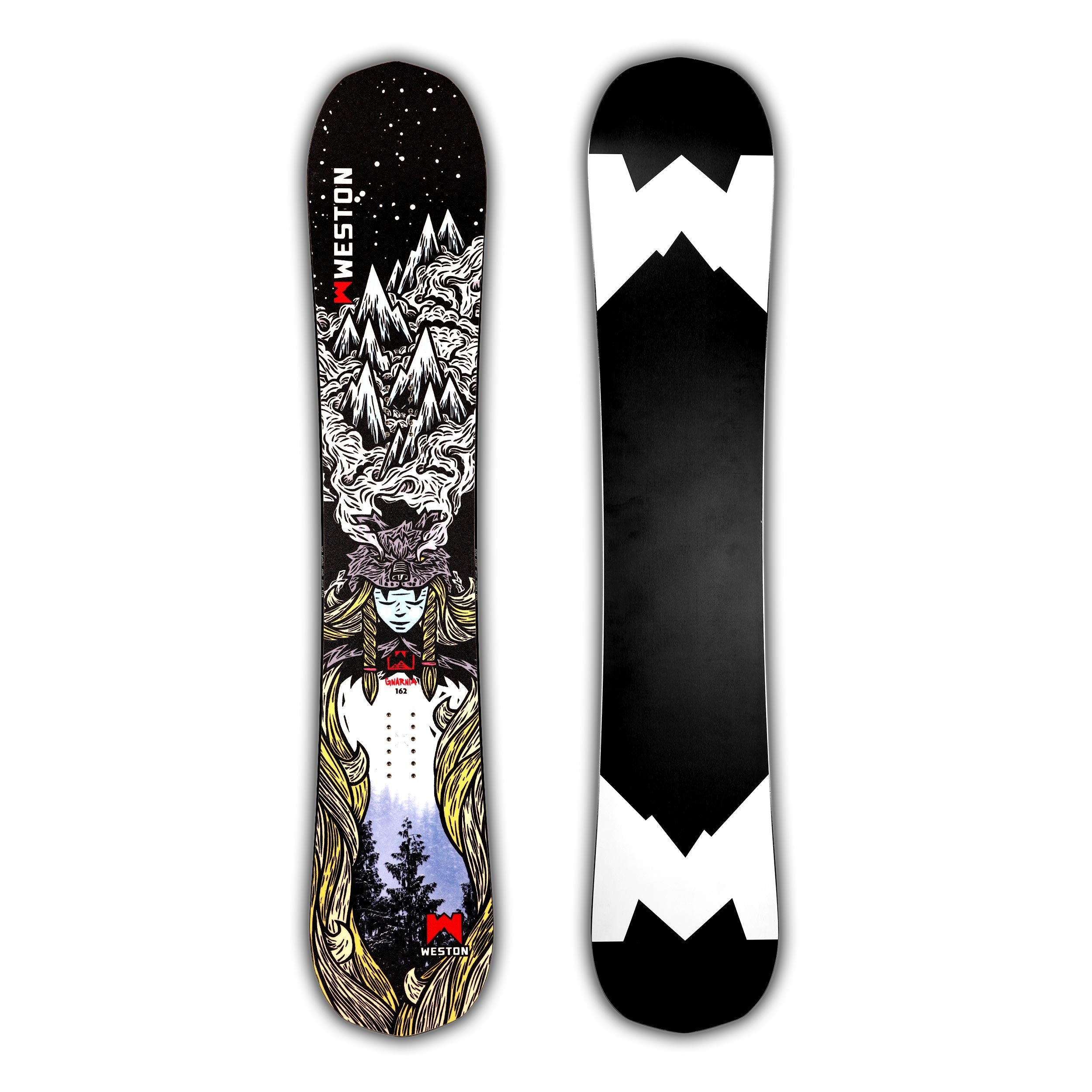 Born in deep pow and raised on rowdy steeps, the Gnarnia is Weston’s most versatile directional freeride board - built to dominate the entire mountain, from couloirs to corduroy. A moderate taper (~9mm) and setback stance gives you effortless float on storm days, without compromising precision on firm or variable terrain.