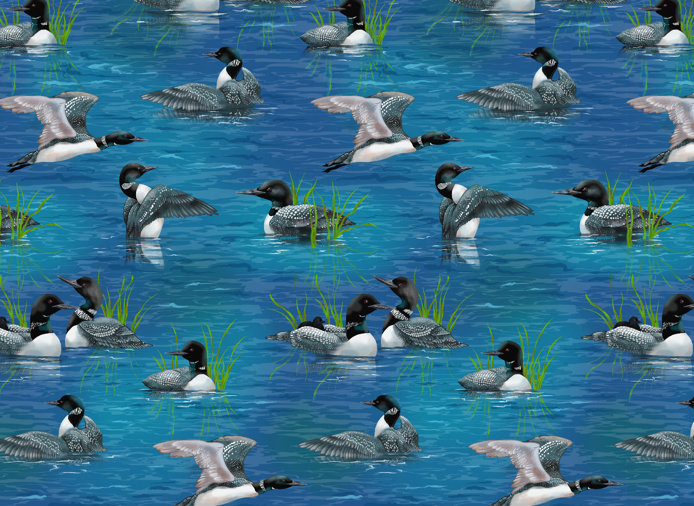 True-To-Trail Print: The sound of loons in the dark while laying beside a lake in a tent will forever be etched into our minds and hearts. Loons in several different poses with a Lonesome Lake backdrop!